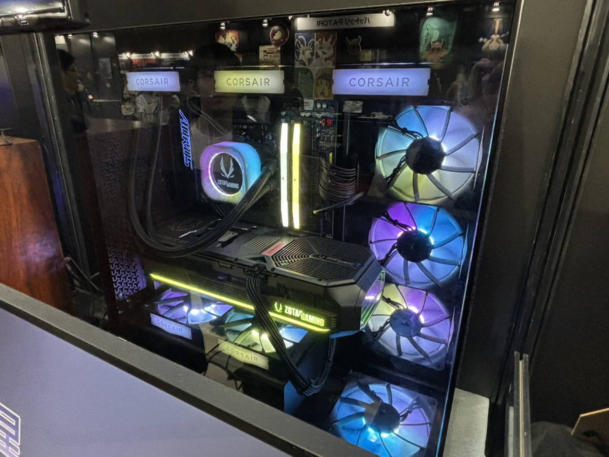 さらにインディーゲームコーナーの公式機材スポンサーとなっているZOTACは、デジタルハリウッド大学の展示スペースにて、「ZOTAC GAMING GeForce RTX 5090」グラフィックスカードを搭載したハイエンド自作PCを展開。