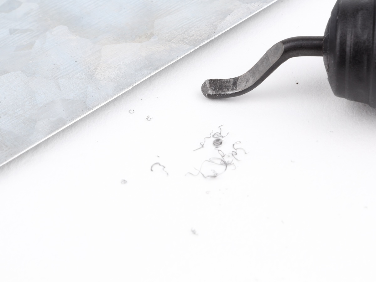 続いて、同じ直線でも材料をブリキの薄板に変えてみました。使い方のコツはアクリルとほぼ変わりませんが、ハンドルを立て気味にすると引っ掛かることが多いように感じました。これは、薄板というのが影響していそうです。