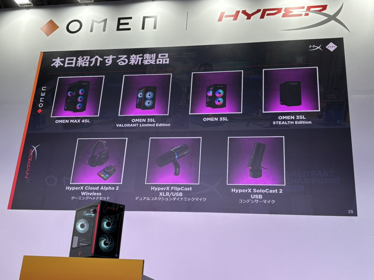 また発表会ではOMEN 35L VALORANT Limited Editionに加え、フラッグシップモデルである「OMEN Max 45L」や「OMEN 35L Stealth Edition」を含むラインナップが紹介されました。