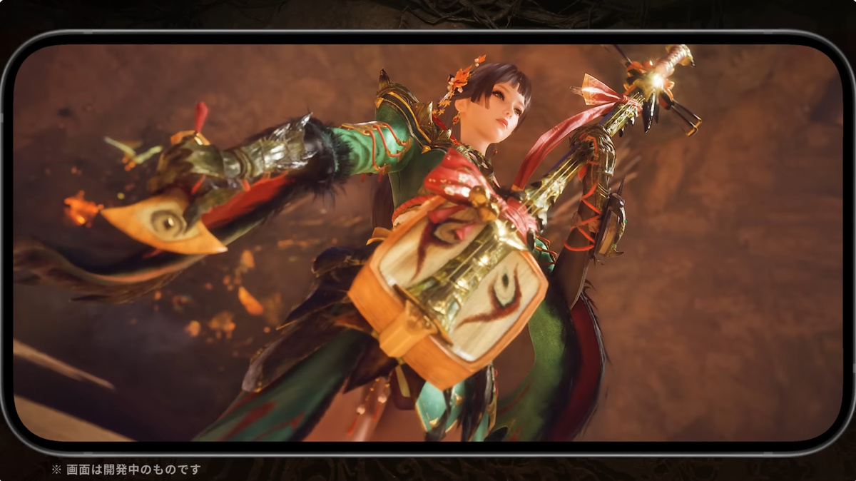TGS2025トレーラーより。楽器のような太刀を使う雅なお姉さん「ミドリ」。試遊では彼女など主人公以外のキャラも使用できる