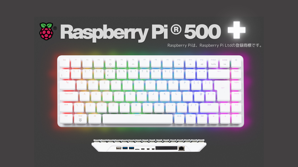 Raspberry Pi 500+発表 16GB RAM&256GB SSD搭載、RGB対応メカニカルキーボード一体型PC