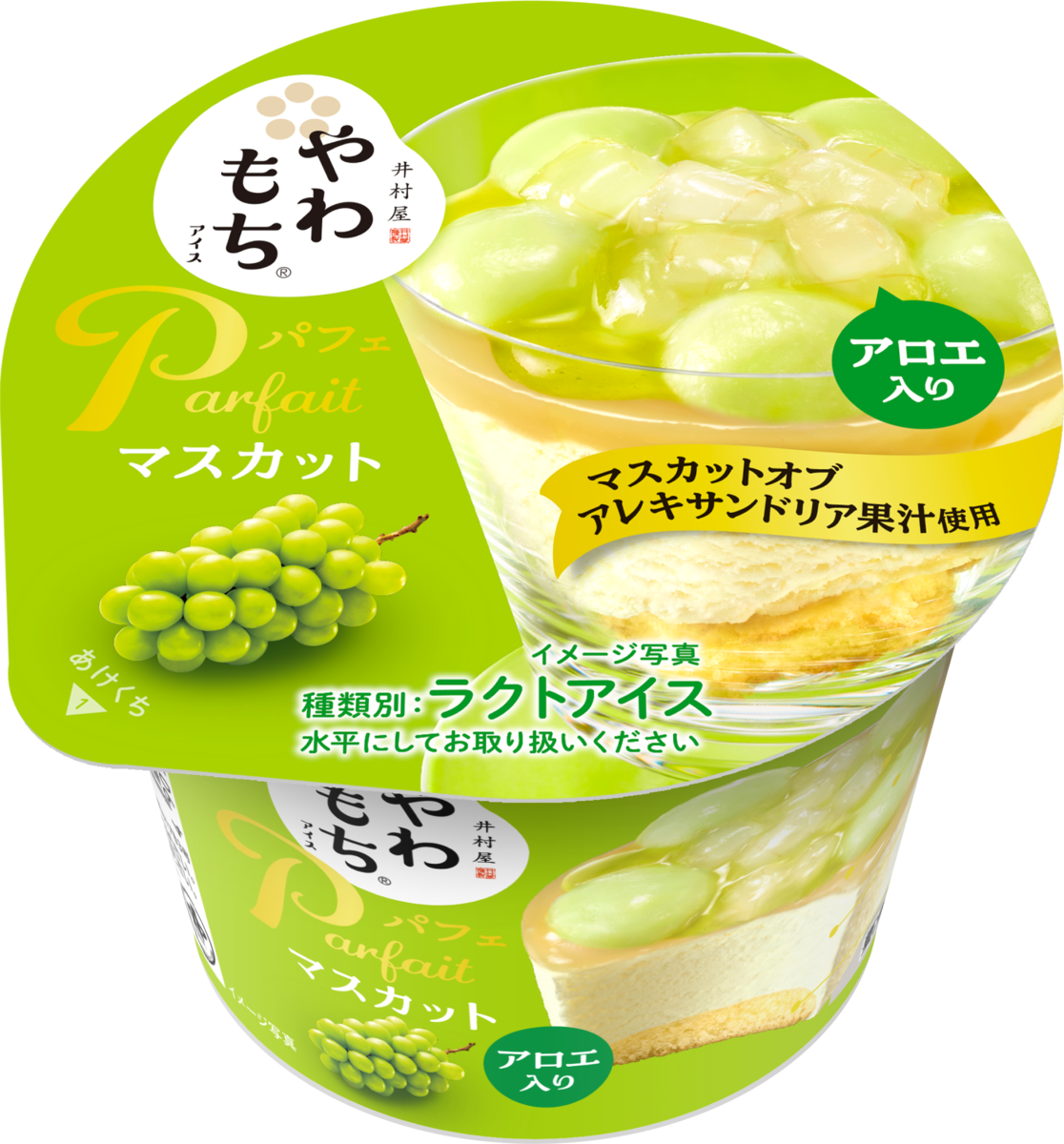 井村屋は「やわもちアイス パフェ マスカット」(オープン価格)を10月6日から季節限定で発売する。