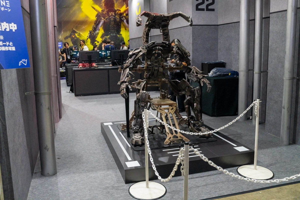 「EXOBORNE」も日本初試遊となり、世界観を再現したパワードスーツが展示。オフライン試遊イベントに参加すると、オリジナルグッズがもらえる。