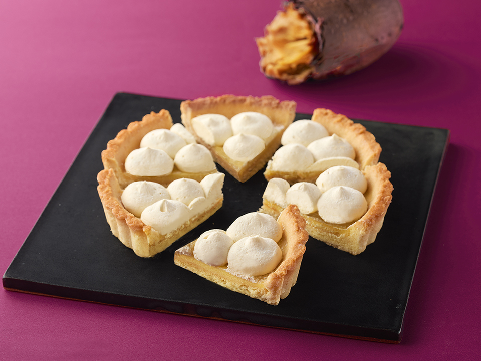 口当たりなめらかでクリーミーなスイートポテトのやさしい味わい、風味豊かな安納芋クリームのぽってりとした可愛らしいフォルムにもこだわり、見た目にもほっこりするようなタルトに仕立てている。