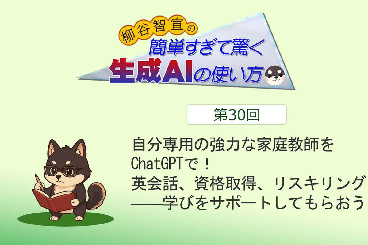 本連載は生成AIをこれから活用しようとしている方たちのために、生成AIの基本やコピペしてそのまま使えるプロンプトなどを紹介。兎にも角にも生成AIに触り始めることで、AIに対する理解を深め、AIスキルを身に着けて欲しい。第30回はChatGPTの学習モードを使って学びをサポートしてもらう方法について解説する。