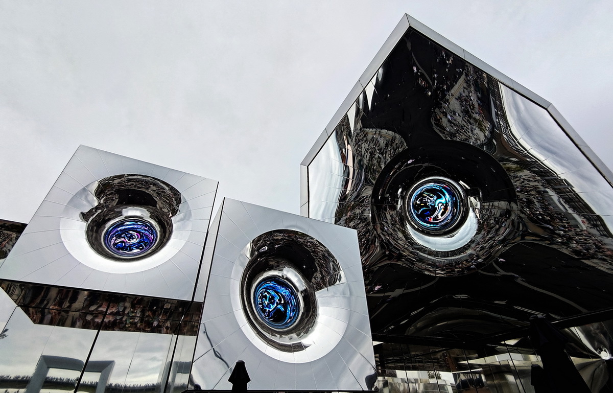 建造物として、70年万博おじさんも感心したのは、「null²(ヌルヌル)」のデザインです。コンセプトによると、「パビリオンの外観は、動的な鏡面素材によって構成され、常に変形しながら周囲の環境や来場者自身を映し出します」で、脈動するキューブと目玉の動きが未来感ありました。