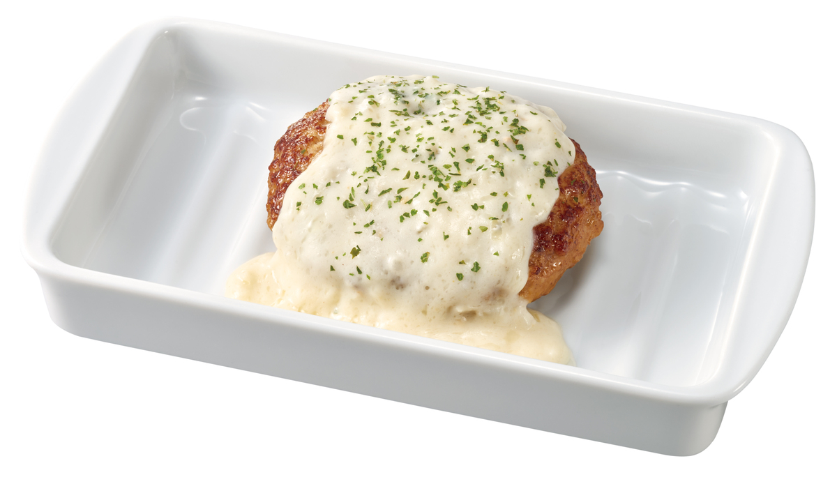 仕上げに、ニンニクがほんのり香るホワイトソースをかけており、この奥深い味わいがカレーやハンバーグの旨みを引き立てる役割に。肉々しいハンバーグとコクのあるチーズ、そしてソースがカレーと絶妙に調和した、贅沢な味わいに仕上がっているとのことです。