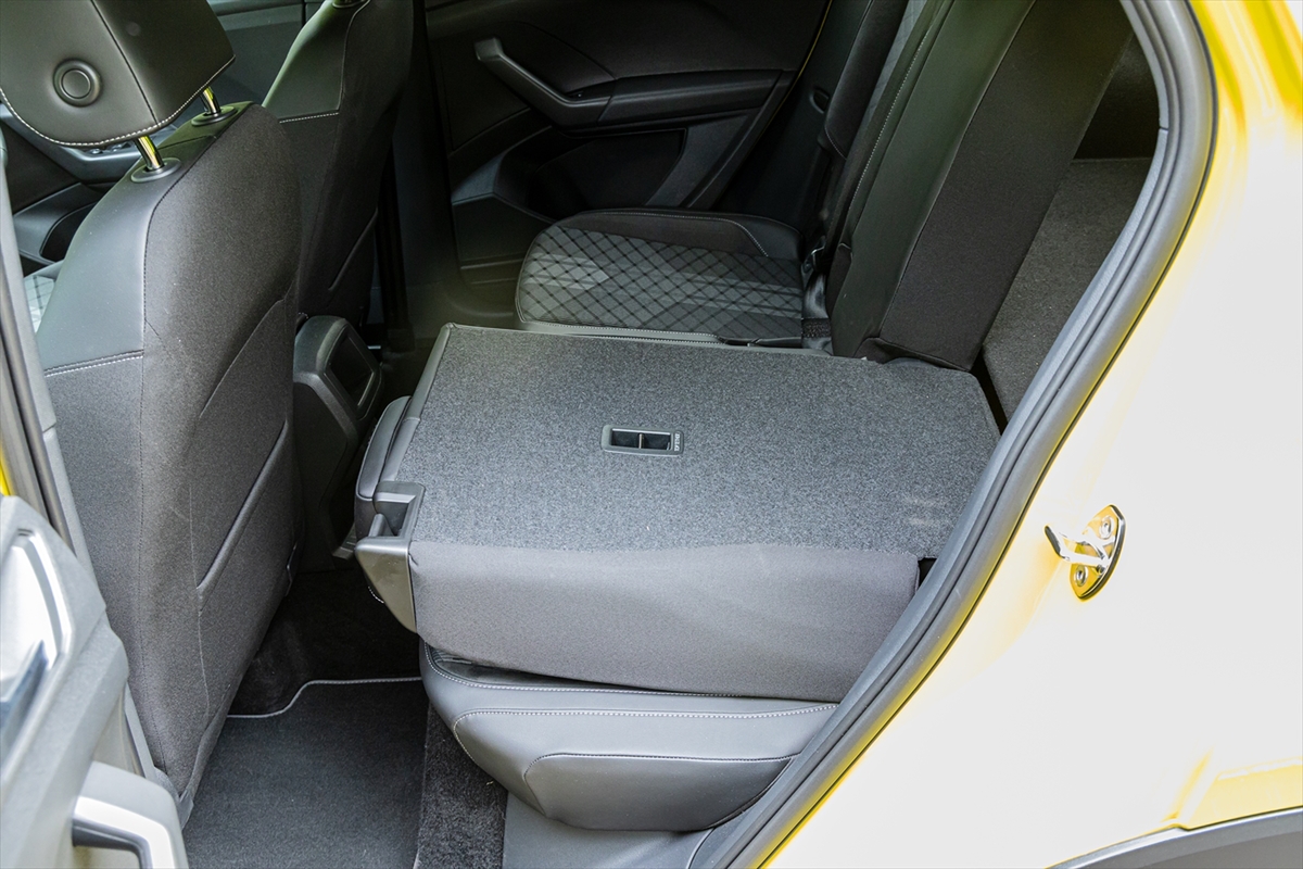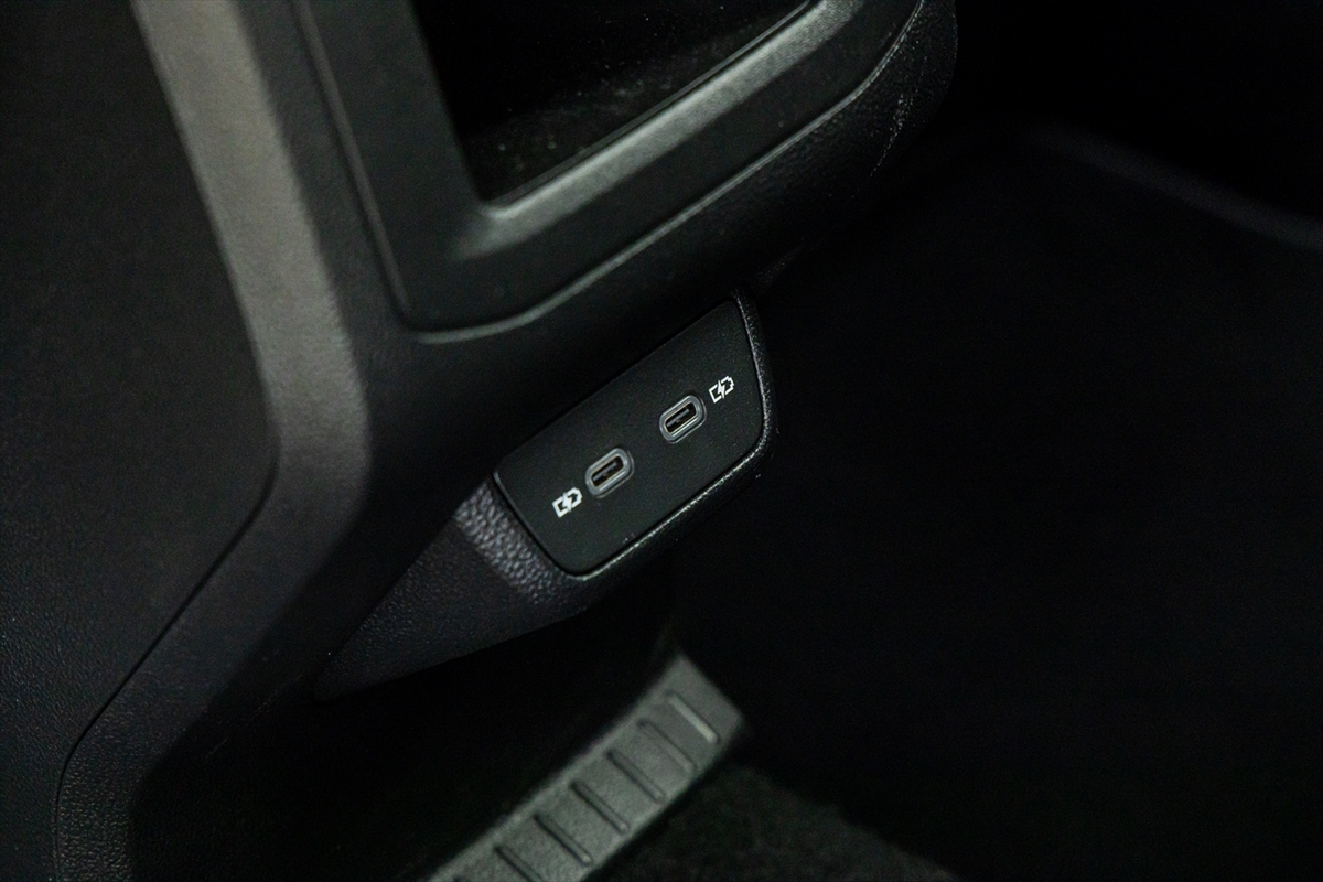 後席は前後140mmスライド可能で、一番後ろまで下げれば足元はかなり広い印象を受けます。USB Type-Cのサービスレセプタクルも用意されています。