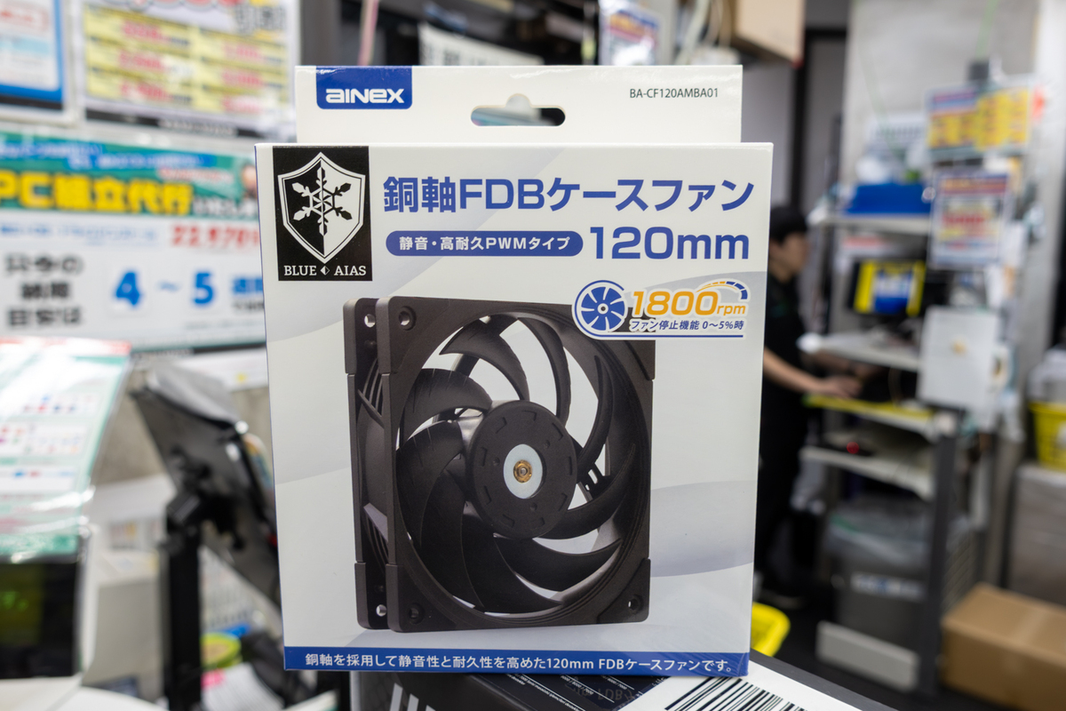 エアフローの確保として、120mmファンをボトム、リア、トップにそれぞれ1基追加している。製品は、銅軸を採用して静音性と高耐久性を高めたアイネックス「BA-CF120AMBA01」だ。長時間ゲーミングも安心のバランスの良い吸排気の確保を狙っている。