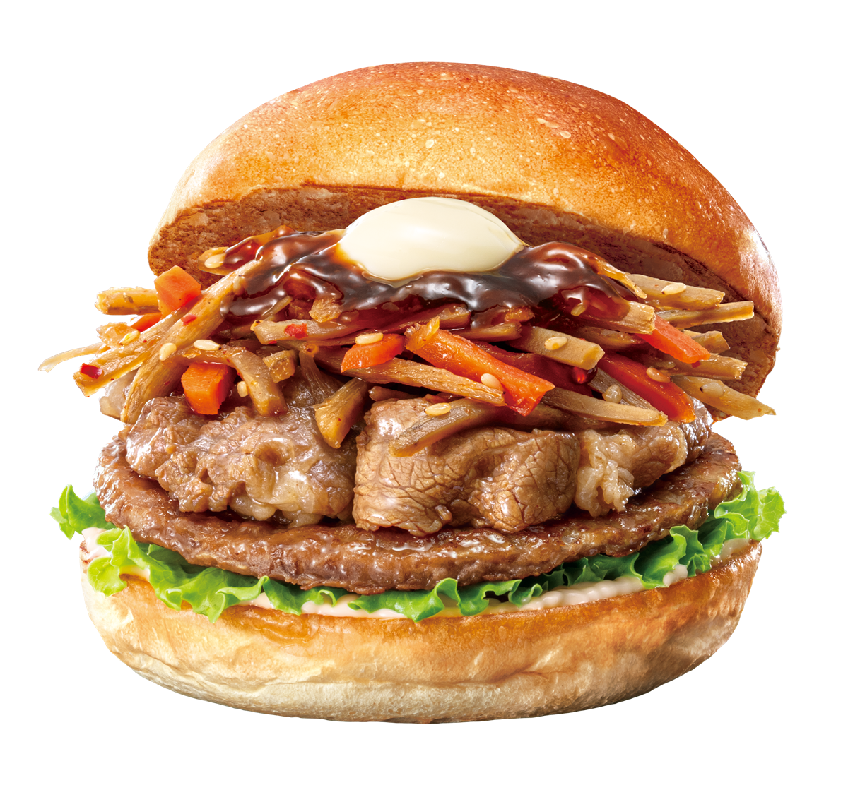 牛カルビごぼうバーガーに旨辛ソースを加え、濃厚な牛カルビと香ばしいきんぴらの組み合わせをよりパンチのある味わいに。ガツンと食べ応えのあるバーガーです。