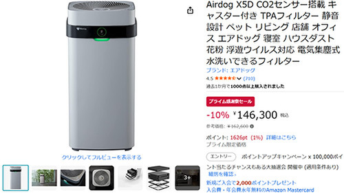 Airdog(エアドッグ)から、CO2センサーを搭載した空気清浄機「X5D」がAmazonプライム感謝祭セールに登場。
