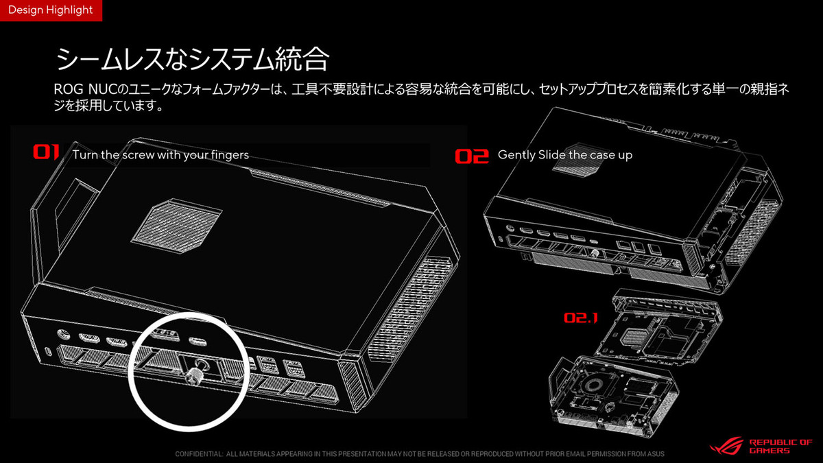 デザインは機能性を追求しており、工具を使わずにメモリーやストレージをアップグレードできるツールレスシャーシを採用。1本のサムスクリューを外すだけでケースがスライドし、内部コンポーネントに容易にアクセスできる。また、ASUS Aura Sync対応のカスタマイズ可能なARGB発光が、ゲーミング環境を鮮やかに彩る。