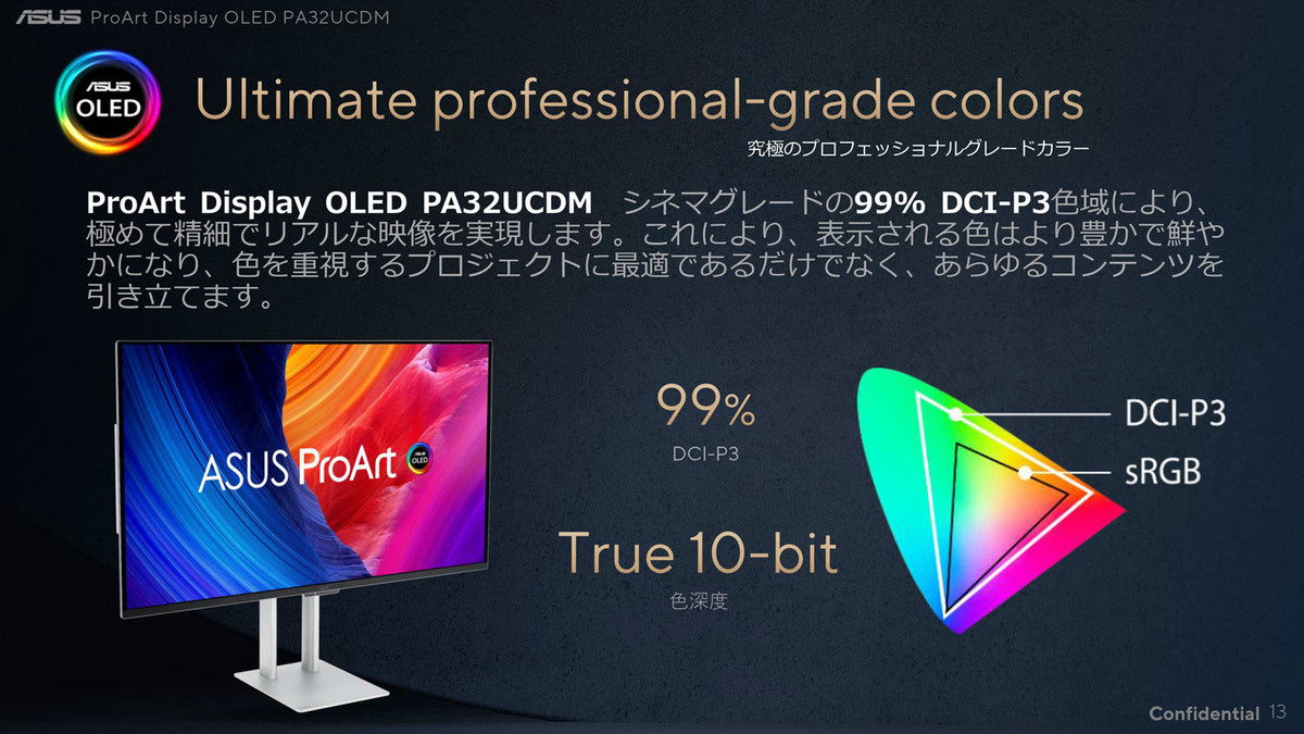 クリエイター向けブランド「ProArt」の最新プロフェッショナルディスプレー「ProArt Display OLED PA32UCDM」を順次発売する。本製品は「クリエイターによって、クリエイターのために」というProArtの哲学を体現し、映像編集、カラーグレーディング、ゲーム開発など、プロフェッショナルの厳しい要求に応えるべく設計されたフラッグシップモデルとなる。