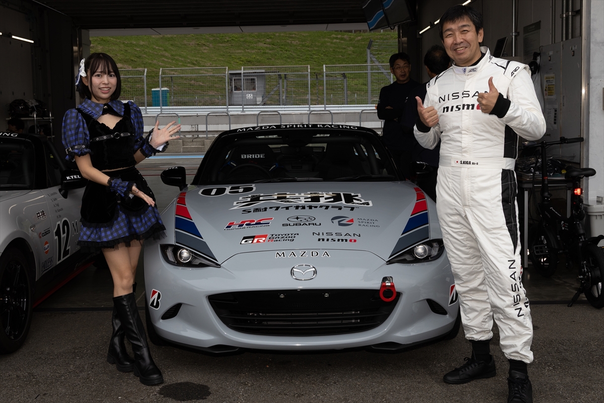 その正体はスーパー耐久のST-Qクラスに参戦する各自動車メーカーの担当者たちが、「共挑」の名のもと、自動車業界の課題解決に向けて自由に意見交換をする場として「S耐ワイガヤクラブ」を結成。そして、トントン拍子にメディア対抗ロードスター耐久レースに参戦することになったのだとか。