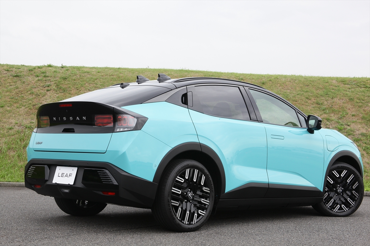新型リーフが初代、2代目と大きく違うのがボディースタイルです。これまでハッチバックだったのに対し、クーペSUVと呼ばれるボディースタイルへと生まれ変わりました。また、日産のラインアップにある、より大きなBEV(バッテリーEV) SUVであるアリアと共通のプラットホームが採用され、車格も大きくなりセグメントで言えばCセグメントSUVとなりました。