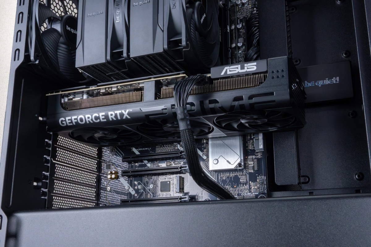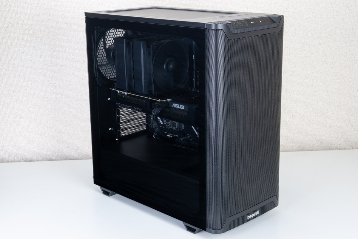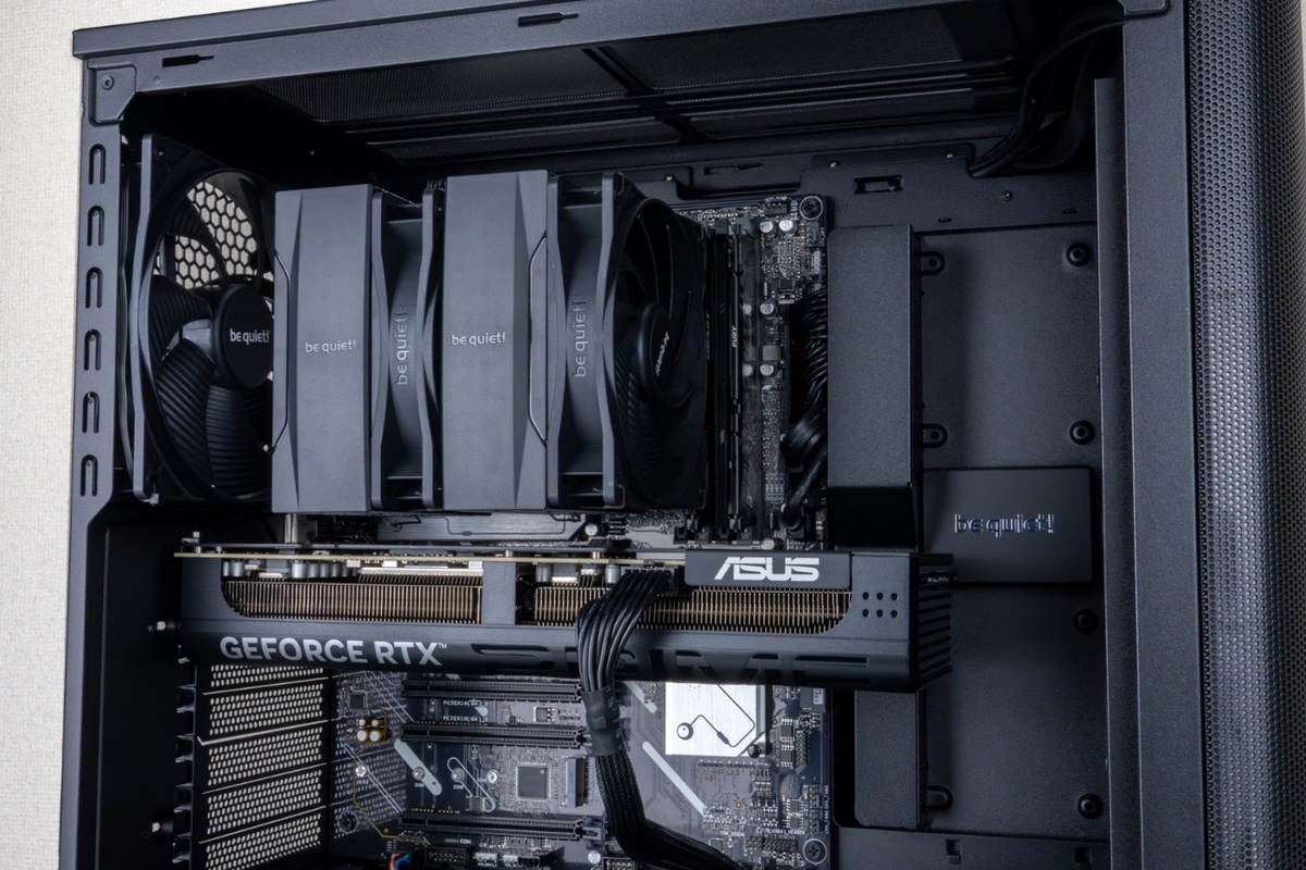 電源は「be quiet! PURE POWER 12 M 850W BN756」を採用し、ケースも「be quiet! PURE BASE 501 Airflow Window Black」と冷却が必要なパーツに関しては「be quiet!」で統一されているのが特徴である。