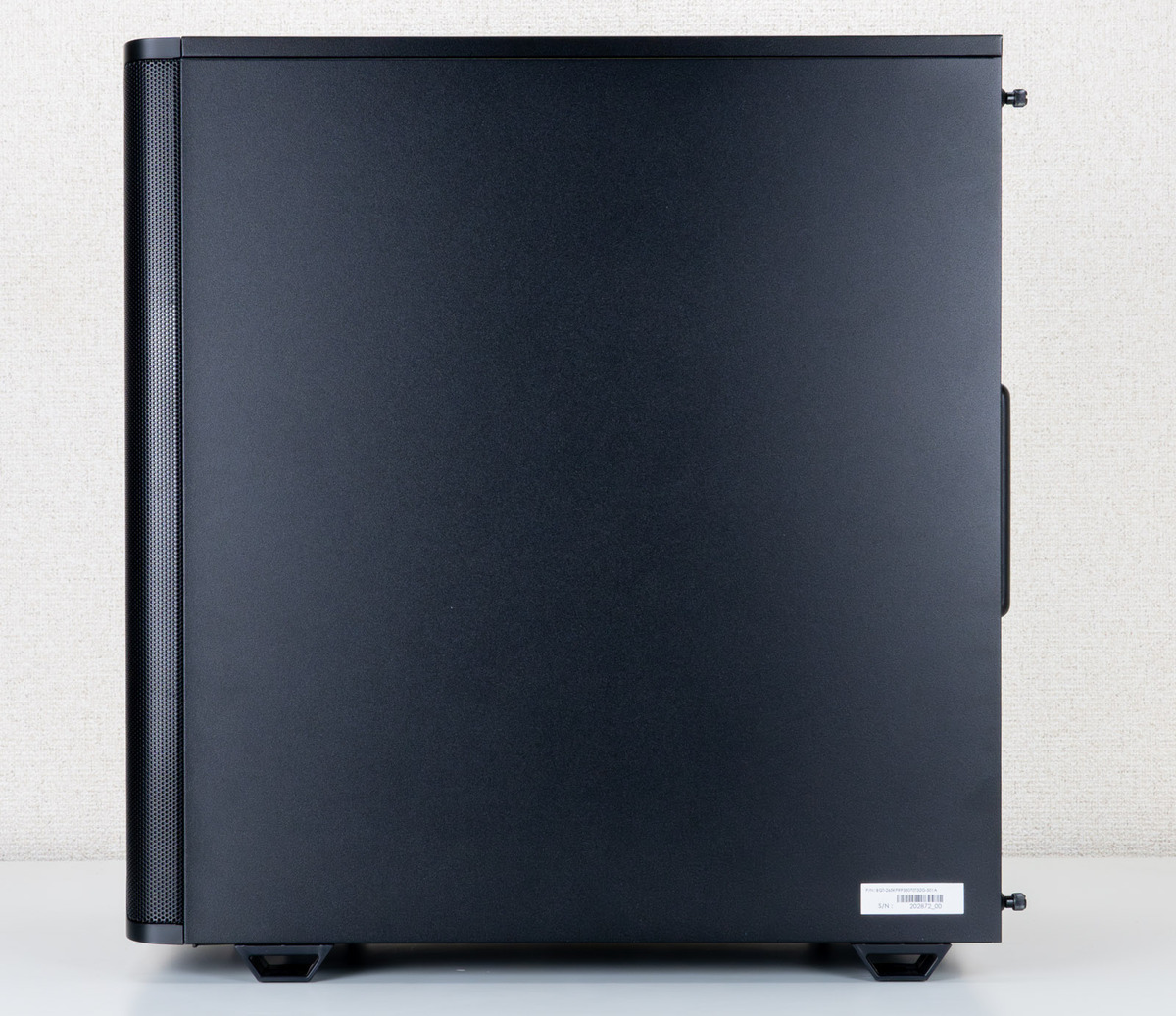強化ガラス製サイドパネルにより中身が見える。煌びやかなライティングはなくレーシングカーにも通じるスパルタンな印象を感じさせる。2基のPure Wings 3 140mm PWMファンによるエアフローは、非常に静かにもかかわらず、冷却性能が高い質実剛健なゲーミングPCとして魅力的なモデルだと言えよう。