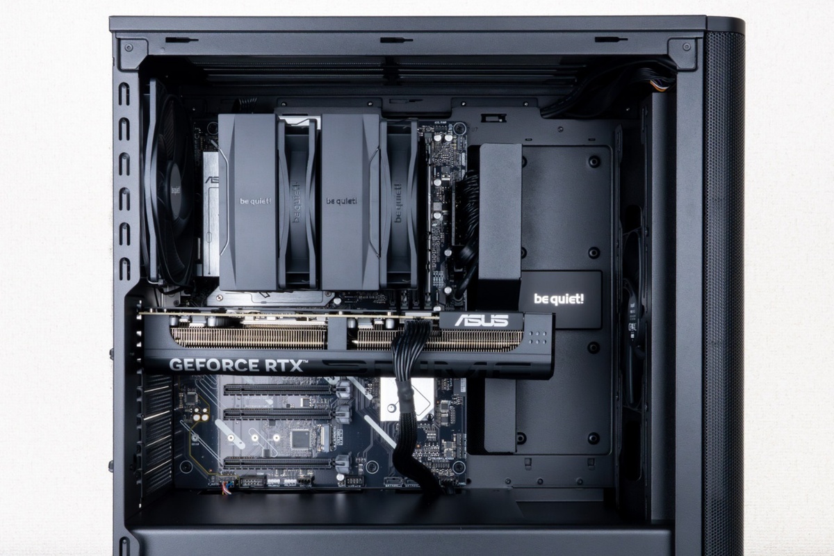 今回レビューしたbe quiet! パーツ採用PCシリーズは、28万9800円から。前述のとおりGeForce RTX 5060 TiとGeForce RTX 5070 Ti搭載のバリエーションモデルが用意されている。高速なUSB 20Gbps (USB3.2 Gen2x2)Type-CポートやWi-Fi 6EとBluetooth v5.3などを搭載しているうえ、自作市場で人気のパーツが採用されており、配線もきれいに処理され動作保証もされているので、ゲーミングパソコン初心者はもちろん、コスパ的にも優れているので自作erにもオススメしたい。