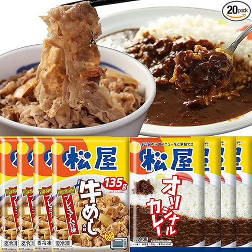 松屋の牛めしの具(プレミアム仕様)&オリジナルカレーのセット「カレギュウセット」がAmazonタイムセールに登場。