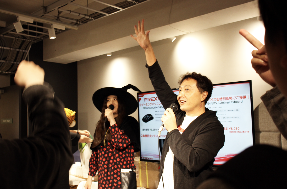 ステージの終盤には、ゲーミングキーボード「FRONTIER GWKB-E4/LPSR Gaming Keyboard」とゲーミングマウス「FRONTIER GWM-S4 Gaming Mouse」をかけたじゃんけん大会を実施! プレゼントが豪華なこともあり、大変盛り上がりました。
