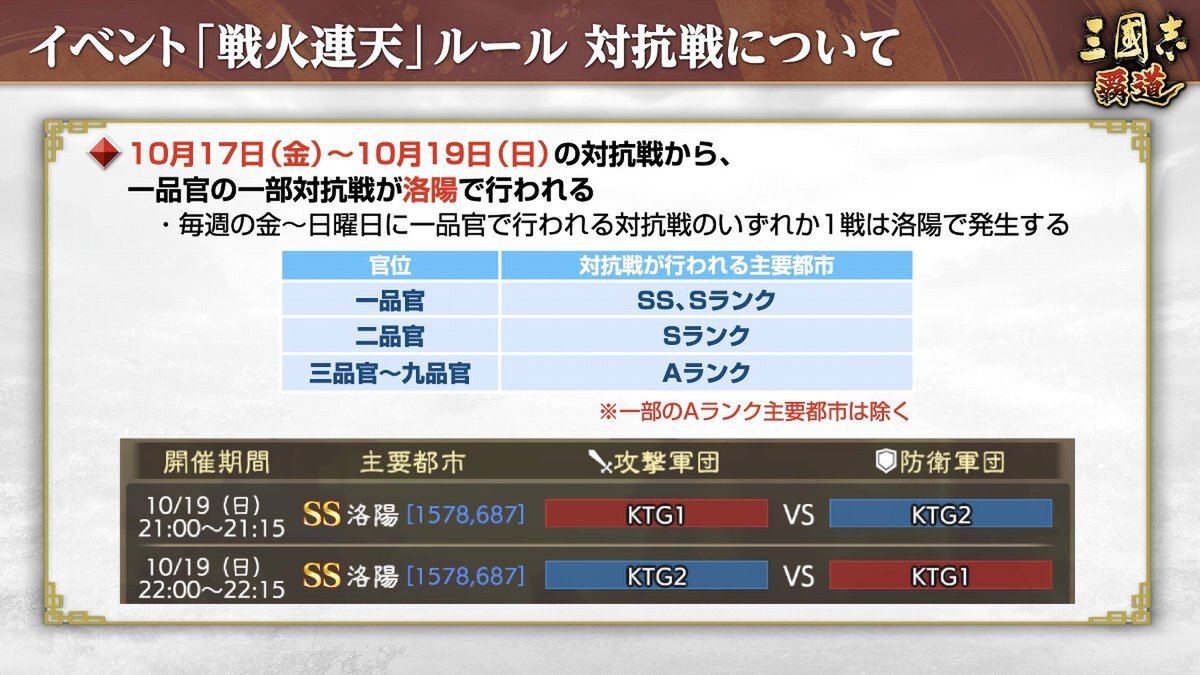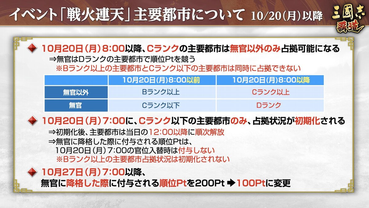 2025年10月16日より、長期イベント「戦火連天」のルールが一部調整された。
