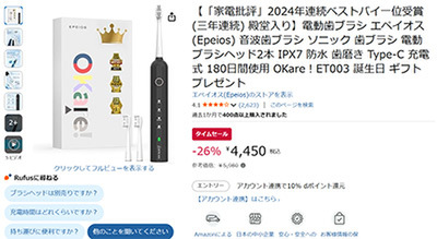東京で生まれたライフスタイルソリューションブランドEpeios(エペイオス)の電動歯ブラシ「OKare! ET003」が現在、Amazonタイムセールで26%オフの4,450円という特別価格で販売中です。