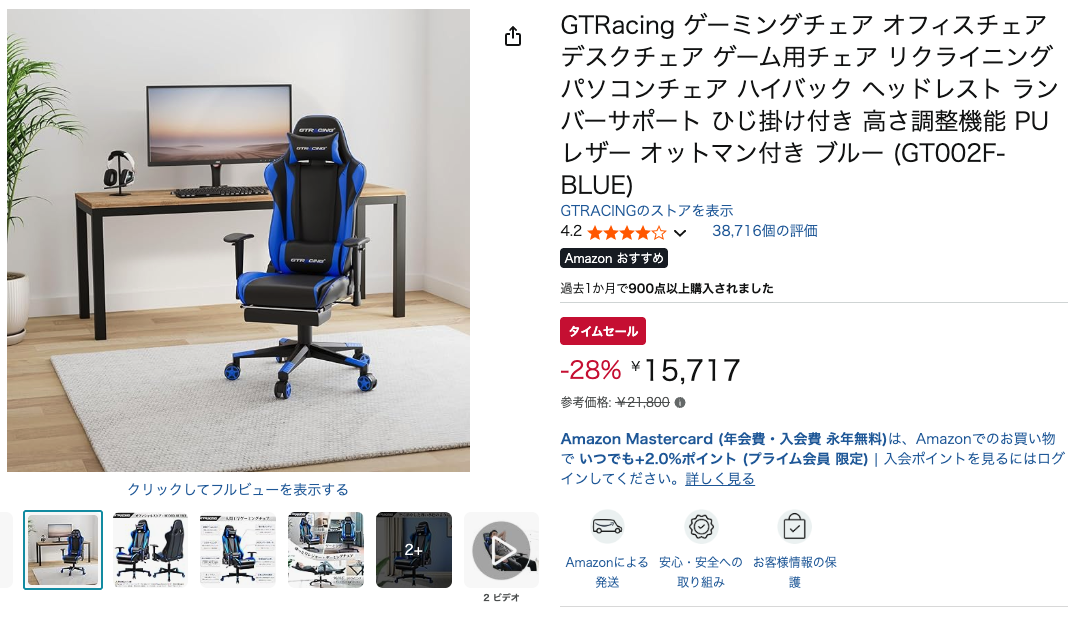 【Amazonタイムセール】GTRacing「GT002F-BLUE」ゲーミングチェアが28%オフ!今だけのお得チャンス