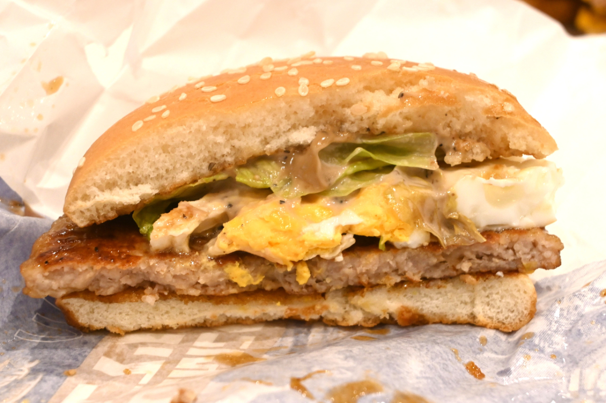 甘辛いてりやきの味をベースに、焦がしにんにくのコクやマヨの酸味、さらに黒胡椒の刺激などが重なって、濃厚さがあとを引くヤミツキ系です。マクドナルドの商品担当の説明によると、ただの力技ではなく、てりやきに負けないよう素材のバランスを丁寧に調整してたどりついたそうですよ。