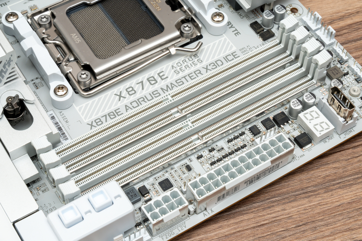 ここからは「X870E AORUS X3D」シリーズ最上位の「X870E AORUS MASTER X3D ICE」をじっくりと眺めていこう。