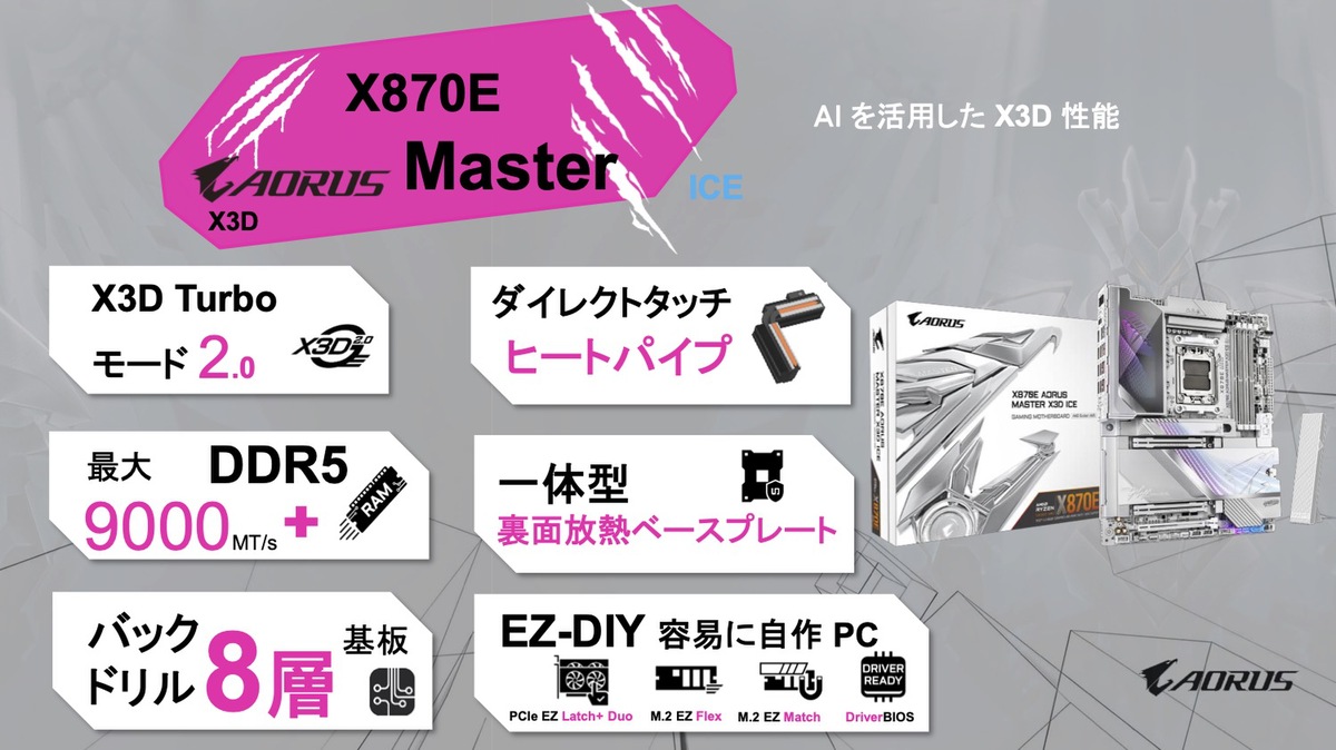 最上位「X870E AORUS MASTER X3D ICE」を眺める