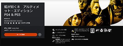 龍が如く8 アルティメット・エディション PS4&PS5も驚きの5,104円で販売中。