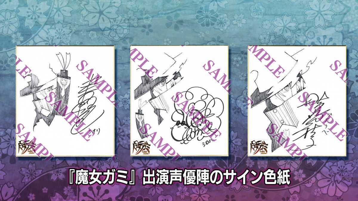 出演声優3人ののサインの入った『魔女ガミ』の収録台本。