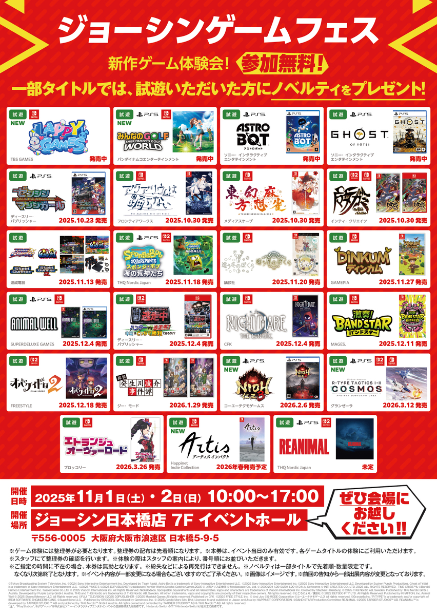 2025年11月1日と2日に大阪のジョーシン日本橋店で開催されるジョーシンゲームフェスにも参加!