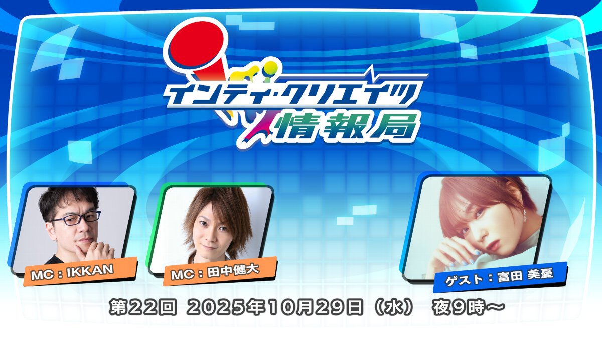 IKKANさんと田中健大さんのダブルMCでお届けするインティ・クリエイツの最新情報を紹介する番組「インティ・クリエイツ情報局」の最新回となる第22回が配信決定。配信日は、2025年10月29日21時から。