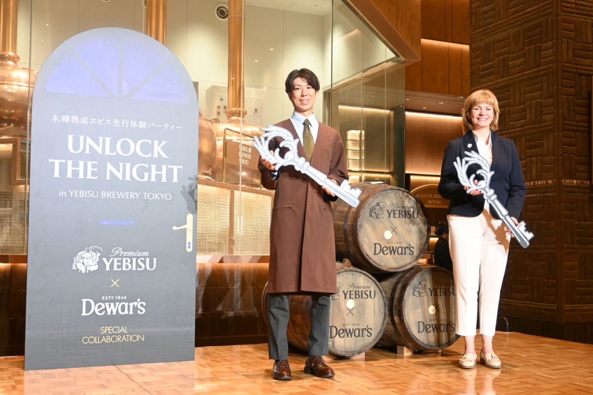 ヱビスとスコッチウイスキーブランド「デュワーズ」とのコラボによる、特別なバレルエイジドビール「Key of the Night -Barrel aged-(キー オブ ザ ナイト バレル エイジド)」(アルコール分8.5%)が登場。