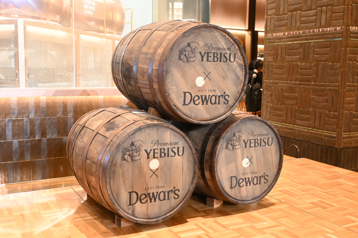 樽は「デュワーズ12年」で使用されたファースト・フィル・バーボンカスク。デュワーズの7代目マスターブレンダー、ステファニー・マクラウド氏がこのために厳選したものだそうです。「YEBISU BREWERY TOKYO」内の醸造施設で、ヱビスブランド Chief Experience Brewerの有友亮太氏により、丁寧に熟成され、完成しました。