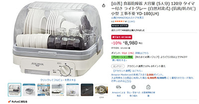 【タイムセール】山善 食器乾燥器 YD-180(LH)登場!