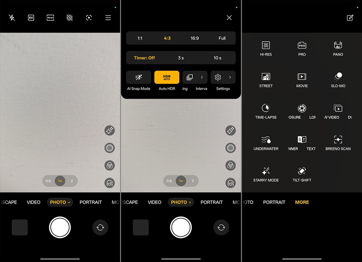 カメラは前述したとおり5000万画素の広角と超広角を搭載、望遠はないものの2倍程度の望遠なら十分な画質が選べる。なお、デジタルでは最大20望遠まで、動画は4K 60fpsまでに対応する。画面上から下へのスワイプでクイック設定メニューが表示できる。