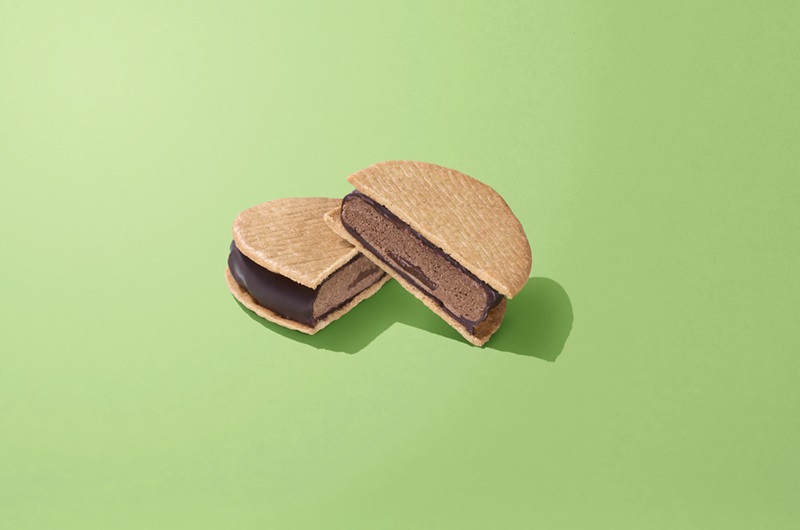 ビターなチョコソース入りクリームをチョココーティングで包み、パリッとした食感のビスケットでサンドしました。