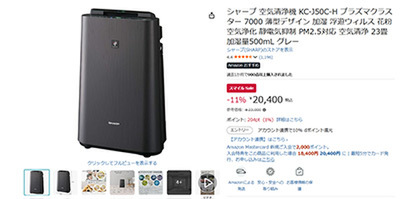 【スマイルセール】シャープ 空気清浄機 KC-J50C-H登場!