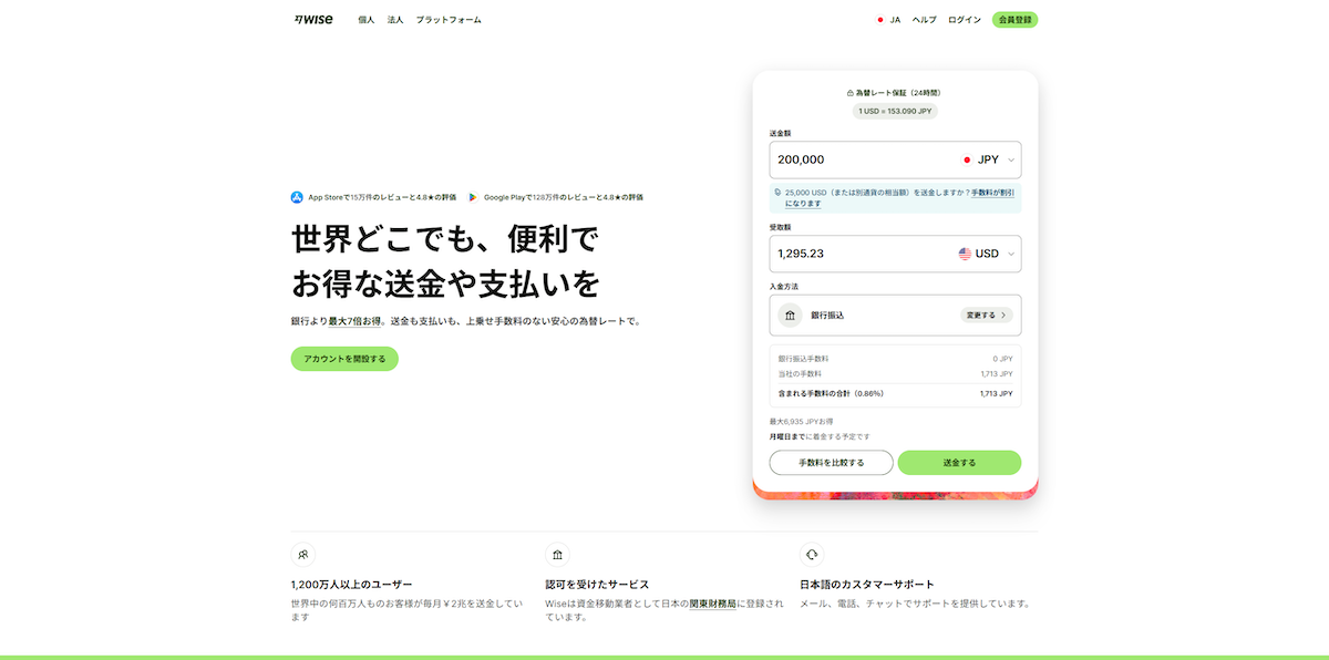 また日本円をチャージする場合は、クレジットカードやデビットカード、もしくは銀行口座からの振込で行えます。その際にクレジットカードやデビットカードの場合はブランドによっては手数料(だいたい1.7%から3%強)がかかるので、銀行振込のほうがオトク。振込手数料が無料の銀行口座を使えば、より節約できます。