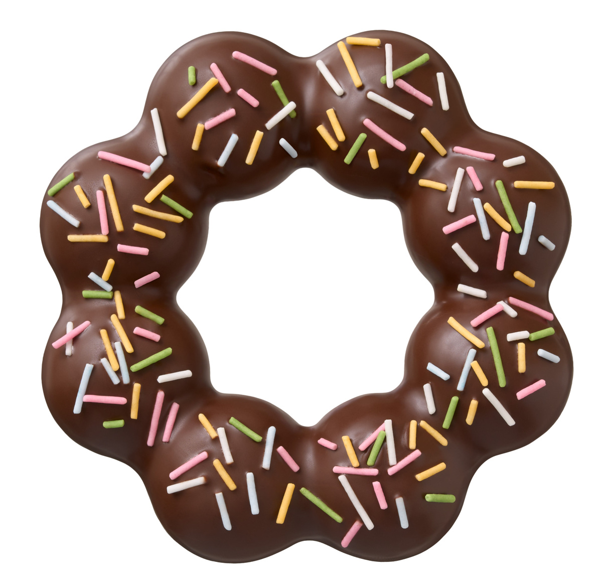 ポン・デ・リング生地にチョコレートをコーティングしてカラーシュガーをトッピング。