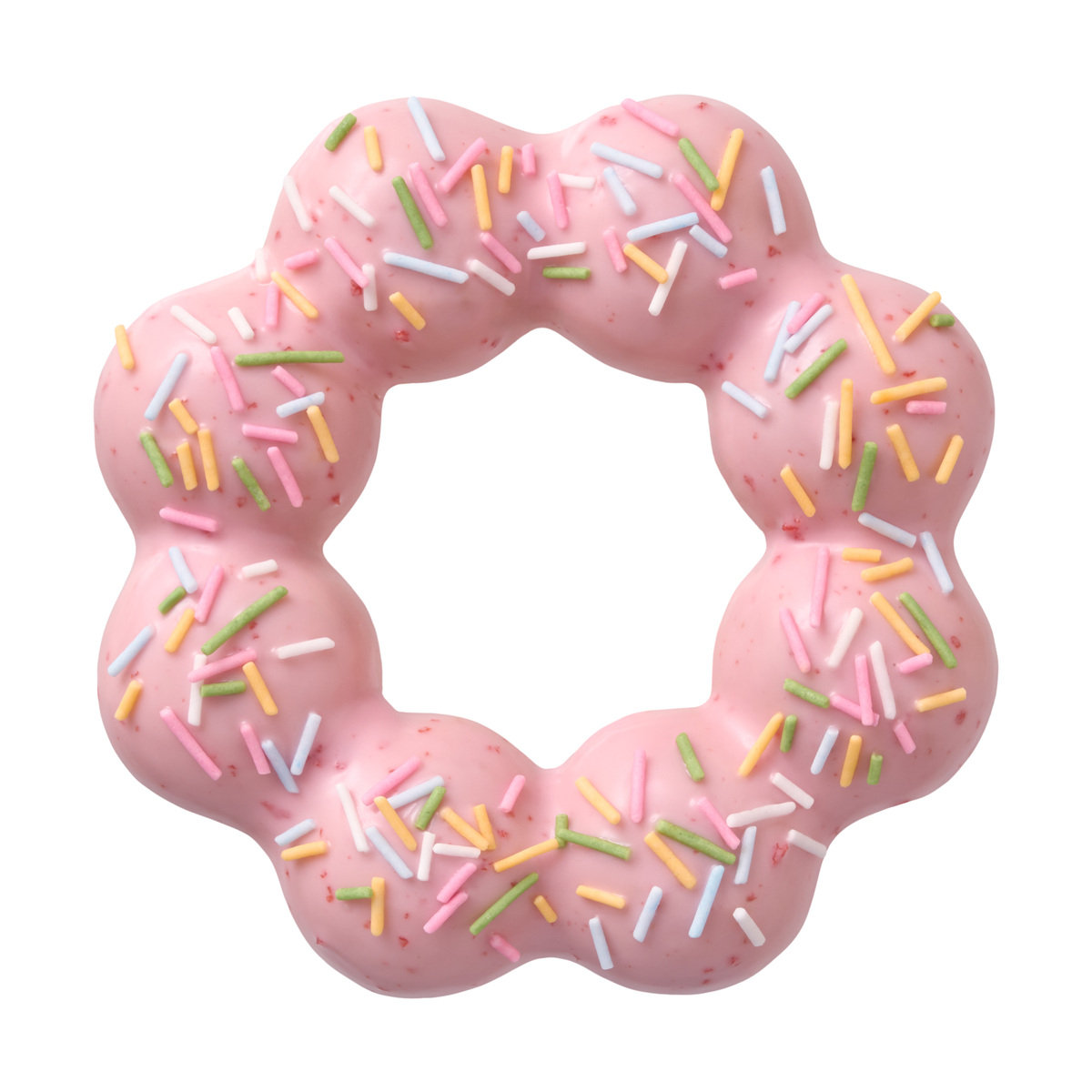 ポン・デ・リング生地にストロベリーチョコをコーティングして、カラーシュガーをトッピング。