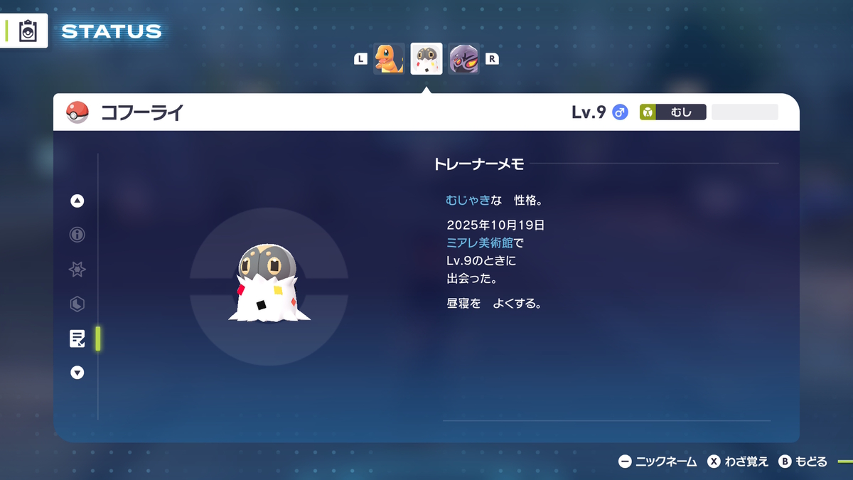 「捕まえすぎてどのコフーライかわからん」との声もあった。確かに進化前の見た目は同じなので、片っ端から進化させるのも手間が過ぎる。そんなときは「つよさをみる」のトレーナーメモを確認しよう。