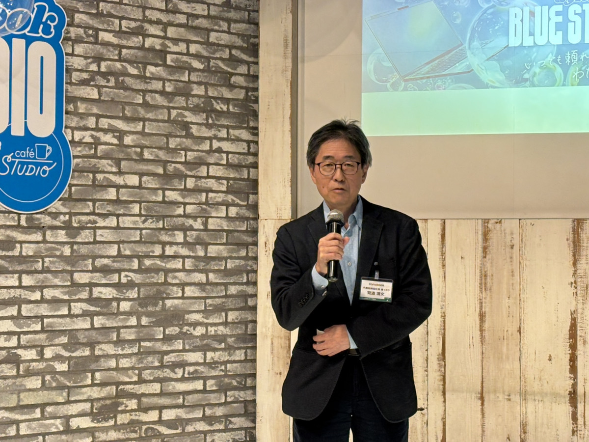 メディア限定の前夜祭に登壇したDynabook株式会社代表取締役社長 兼 CEOの覚道氏は、dynabookは35周年の老舗ブランドであるため、若い世代への訴求が若干弱いところがあるとコメント。この課題に対応するため、今回は若者文化の発信地である原宿を選び、スタジオの協力を得てこの場を設けたと説明。