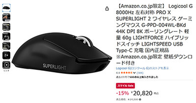 ロジクール G史上最軽量の60gを実現したこのモデルが、過去価格24,500円のところ、今なら15%OFFの20,820円というお買い得価格で購入できます。