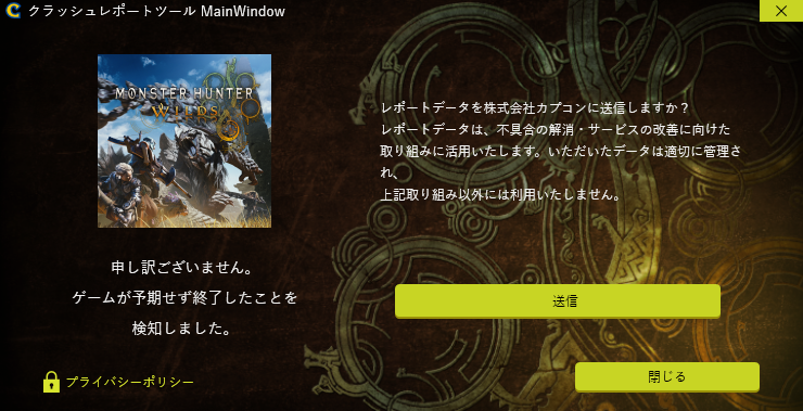 今回のパッチでは、ゲームの強制終了が発生した場合、より細やかに問題が発生した際の状況を確認・分析できるようクラッシュレポートで取得する情報を拡張するとともに、レポートデータをカプコンに即時送信する機能を追加した。