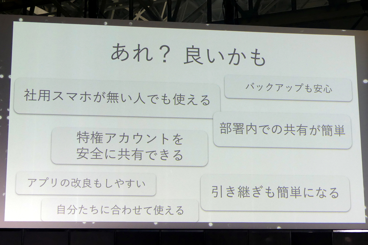 そんなシダックスでは、アプリは申請制にしており、志太さんの所属する情報システム部で確認やアドバイスを行なっている。しかし、そんな体制でも完璧に使いこなすのは難しい。申請制ということで、利用部門からは「PDFを加工したい」とか、「Google Authenticatorがほしい」といったよくわからない依頼が来る。「意味がわからん」と志太さんはボヤく。