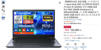 【タイムセール】【整備済み品】東芝 ノートパソコン dynabook G83登場!