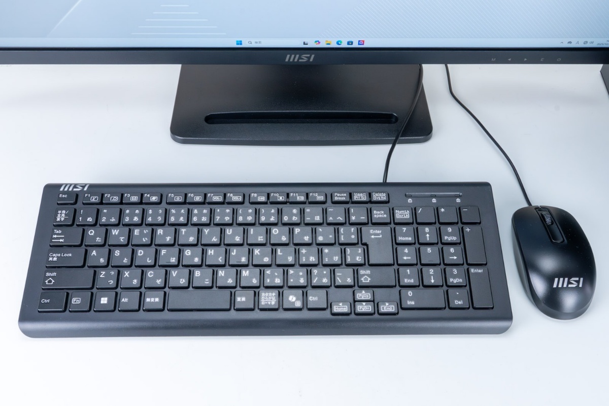 USB接続のキーボードとマウスが同梱しており、キーボードはテンキー付きでCopilotキーも備わっている。